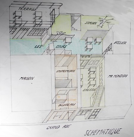Le garage ou passage peut être transformé en galerie, avec un accès par devant, de la Grande rue, et un accès par derrière, du jardin qui donne sur la rue du Cul de Sac. Il pourra être aménagé en espace d'expositions, de lecture, de réunions et de conférences sur l'art.